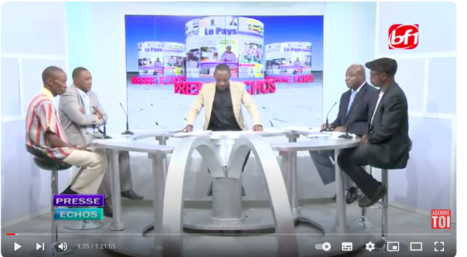 Une recherche d’image inversée a permis de démontrer que cet extrait vidéo est en ligne depuis plusieurs années. La vidéo originale a été publiée le 8 décembre 2019, lors de l’émission Presse Echos diffusée sur la chaîne BF1. À l’époque, Apollinaire Kyélem de Tambèla, présenté comme avocat, participait avec d’autres chroniqueurs à l’émission présentée par le journaliste Lookmann Sawadogo pour commenter la décision du président français Emmanuel Macron de convoquer à Pau en France cinq chefs d’État sahéliens pour des « clarifications » relatives à la présence française dans la région.