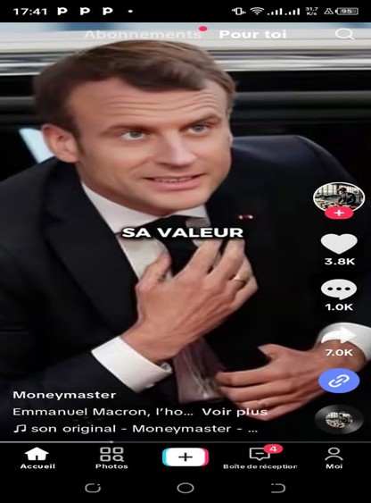 D’une durée de 42 secondes, la publication TikTok en question a recueilli plus de 1 000 commentaires et plus de 7 000 partages. Elle débute en affirmant que Macron est « l’homme le plus riche de France » et que sa fortune surpasserait celles de Bill Gates et Elon Musk réunies. Parmi les biens mentionnés figurent des bateaux en or, un manoir de 100 millions de dollars à Monaco, une maison à Paris valant 20 millions de dollars, un jet privé Gulfstream G650 et une collection de montres de luxe estimée à plus de 80 millions de dollars. La publication conclut en prétendant que sa fortune nette dépasse 700 millions de dollars.