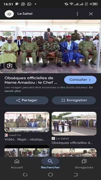 Les obsèques officielles de Hama Amadou se sont déroulées le même jour, au palais présidentiel du Niger, en présence du président de la transition, le général Abdourahamane Tiani, ainsi que de nombreuses personnalités politiques et militaires. On n’y voit aucune image de Mohamed Bazoum, qui était en détention depuis le coup d’État du 26 juillet 2023